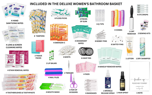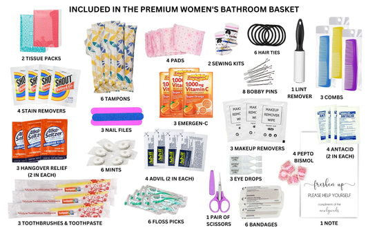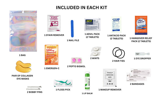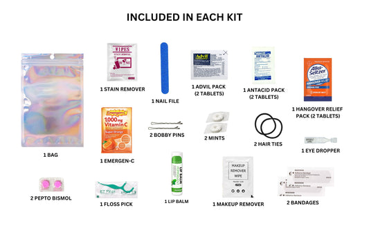 Our collection of high-quality supply kits is designed to enhance your wedding, event, or special occasion. From bathroom baskets to emergency kits and guest essentials, each carefully curated kit is packed with everything your guests may need. Our kits ensure your event runs smoothly and your guests stay refreshed and prepared.